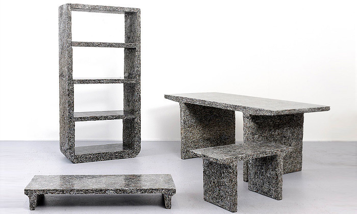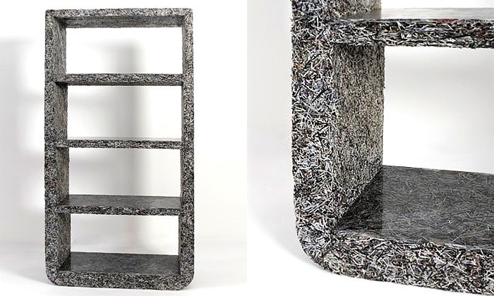 Belgický designér Jens Praet vytvořil další experimentální sérii nábytku nazvanou Shredded. Tři různě veliké stolky a knihovna jsou vytvořeny ze starého skartovaného papíru. Vysloužilé časopisy o bydlení tak byly znovu ekologicky využity k samotné výrobě nábytku, který však má až 30 kilogramů. Designér navrhuje i další kolekce nábytku z mramoru, dřeva nebo bronzu.