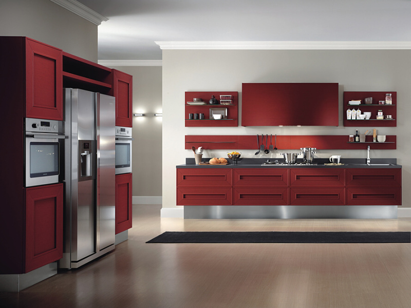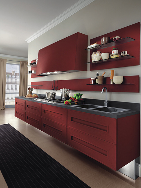Červená kuchyňská linka je odvážným počinem firmy Composit. Designér Leone Mazzari vdechl této řadě kuchyní se slušivým názvem Melograno "Granátové jablko" dramatický styl, který mnohé z nás zaujme. V této moderní kuchyni byl samozřejmě kladen důraz i na její funkčnost. Jistě byste ocenili promyšlené uspořádání úložných prostor, kde je všechno organizované a snadno dostupné. U modelu Melograno můžete vybírat z dalších barev, včetně tónů přírodního dřeva.