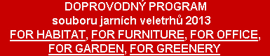 Již tradiční součástí souboru veletrhů FOR FURNITURE, FOR OFFICE, FOR HABITAT, FOR GARDEN, FOR GREENERY je rozsáhlý doprovodný program, v rámci kterého budou probíhat semináře, konference, soutěže, ale i poradenství designérů či bytových architektů. Koučink, facility management, lidské zdroje, operační systémy, ukázky výuky cizích jazyků a další se představí v konferenčních sálech výstaviště PVA EXPO PRAHA v Letňanech.