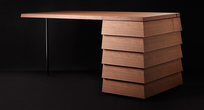 Kromě revolučních dvouosých výsuvů je stůl Cartesia vybaven drobnou zásuvkou v zadní části stolu, určenou pro ukládání elektrické šňůry a kabelů. Šikovná drážka umístěná podél zadní hrany stolu, vám umožní povytáhnout kabely a snadno tak připojit další příslušenství k PC. U takto unikátního stolu byste pravěpodobně neočekávali žádnou nízkou cenu. A opravdu tomu tak není. Tento nádherný kus kancelářského nábytku vás přijde na 6000 dolarů. Stůl je nabízen ve dvou provedeních - masivní ořechové dřevo nebo dřevo stromu tamo.
