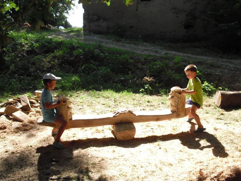 Dřevo na řezby pochází ze stromů, které v Petrovicích musely padnout k zemi z bezpečnostních nebo zdravotních důvodů. Šikovné ruce řezbářů z nich vytvořily houpačku Ježkovy voči od Václava Křížka, ženu jako hudební nástroj Violu a plastiku Doktor stromů od Petra Žemličky.