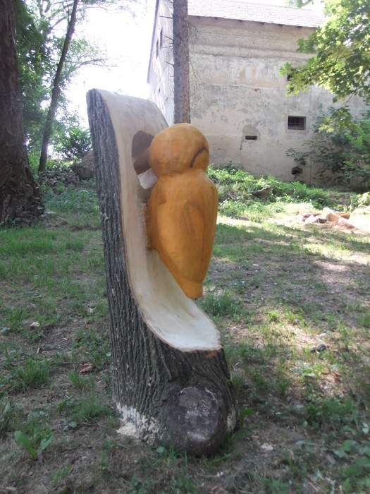 „Honza Holub, který je se svou ženou Kristýnou spolupořadatelem řezbování, byl zvědav, jak vypadá strom uvnitř a proto si ho rozepnul. Tak vznikla řezba Zip. Michal Štěpánek opracoval dutý kmen lípy a tak máme zajímavý Květináč. Z dalšího kusu lípy pak vyřezal Židličku," přiblížil starosta řezby všem, kteří je nemohou spatřit na vlastní oči.