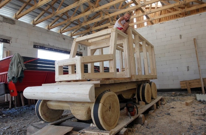 Hodně neobvyklou prolézačku v září dostanou děti v Třešticích na Jihlavsku. Zdejší místostarosta z několika dřevěných masivů vyrábí maketu staré vejtřasky, dnes už legendárního nákladního automobilu. Nová atrakce vzniká v projektu 24 soch Regionu Renesance.