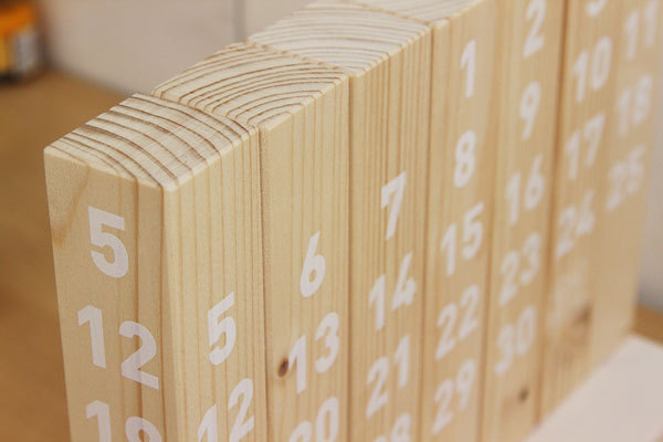 Detail čísel (dnů) na dřevěném kalendáři