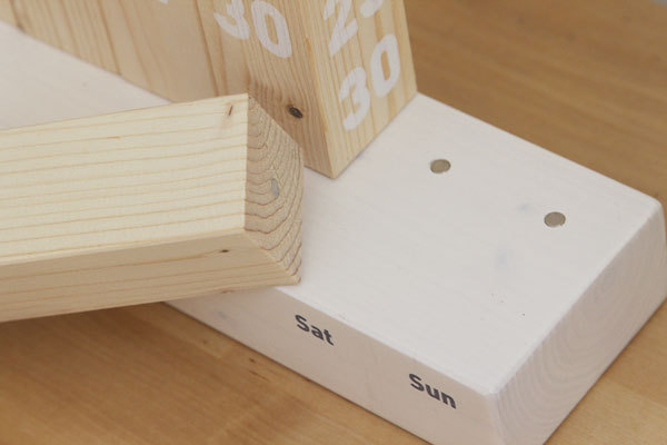 Design dřevěného kalendáře přináší nový 3D aspekt do vašeho přehledu o čase. Dřevěný, ekologický kalendář je vyroben výhradně z odřezků smrkového dřeva zbylých při výrobě nábytku. Jeho životnost je neomezena a při jeho používání nespotřebujete ani jeden list papíru.