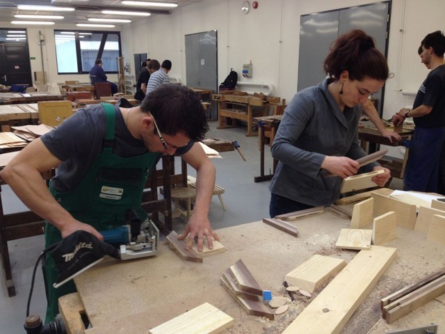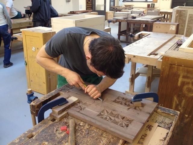 Tato skupinka měla možnost pracovat ve zcela novém prostředí, a to v dílnách střediska praktické výuky v Heleníně, které bylo otevřeno v září 2013. V letošním roce žáci vyráběli dvě truhly - vyřezávanou ořechovou truhlu a prořezávanou truhlu v gotickém slohu. Všichni si vyrobili intarzované šperkovnice a měli možnost seznámit se s prací na soustruhu, na kterém si vyrobili starou českou hračku „káču“. Kromě práce je čekala řada výletů, ať už do Prahy nebo do Polné, kde měli mimo jiné možnost nahlédnout také do loutkového divadla. Už tradičně navštívili firmu Kronospan a absolvovali prohlídku pivovaru.