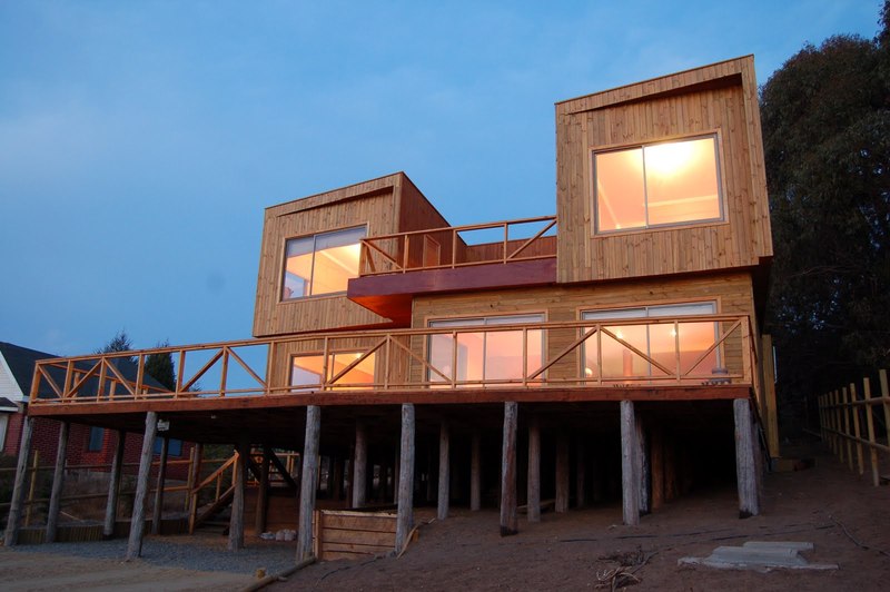 Bydlení v blízkosti divočiny ... to je pro mnohé milovníky přírody největším snem. Při přemýšlení o tom, jak být blíže přírodě, můžete jednoduše začít se svým domem. Pěkým příkladem může být jedinečný dům, navržený architektektem Jonasem Retamalem. Jak sami vidíte, jedná se o moderní design dřevěného domu vybudovaného na plánech plovoucích domů na pobřeží Chile. Majitel tohoto domu jednoznačně reflektuje svůj vztah k přírodě výhradním použitím dřeva v interiérech i exteriérech domu.
