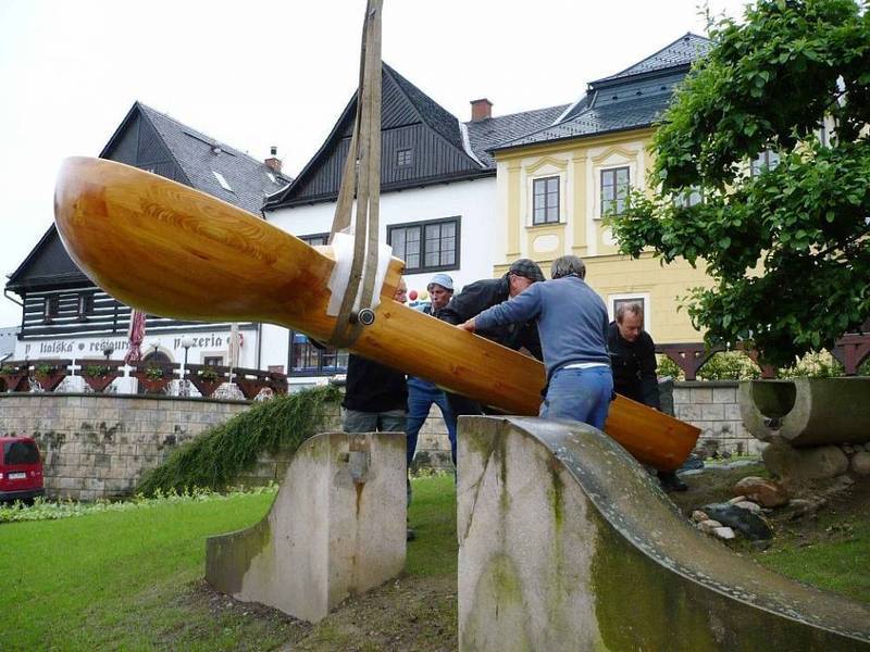 Instalace obří dřevěné lžíce v Jablonném nad OrlicíAutor: orlicky.denik.cz