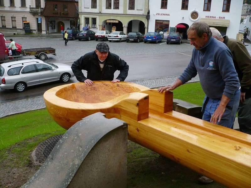 Náměstí v Jablonném nad Orlicí ve čtvrtek zažilo velké stěhování. Za pomoci jeřábu se usazovala v horní části rynku nová obří dřevěná lžíce, která v Jablonném léta sloužila jako netradiční kašna.Ta původní však už byla v dezolátním stavu a rozlomila se, proto byla loni na podzim demontována.