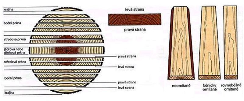 - krajinová prkna (mají tloušťku maximálně 25 mm a musí mít po celé délce levou plochu alespoň dotčenou pilou)