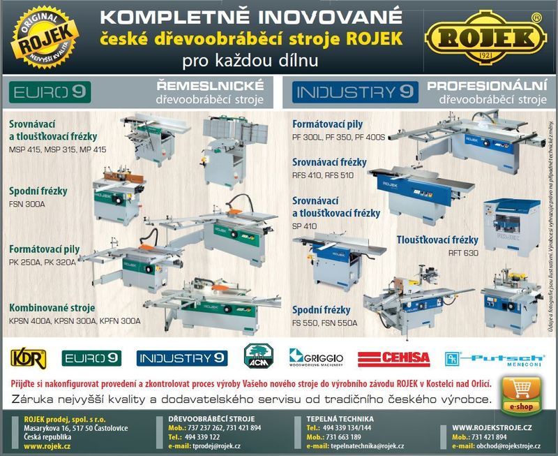 Po celou dobu konání akce vám budou představeny NOVINKY 2017 z oblasti dřevoobráběcích strojů a tepelné techniky firmy ROJEK za akční ceny a výhodné nabídky na vybrané výrobky.