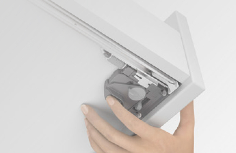 Velkou výhodou seřízení sklonu u výsuvu Quadro 4D je umístění seřizovacího mechanismu na hranu výsuvu, takže není zapotřebí vrtat otvor do zad zásuvky. Mechanismus lze dodatečně umístit na již existující zásuvky, dokonce i na ty, které mají již předvrtaná