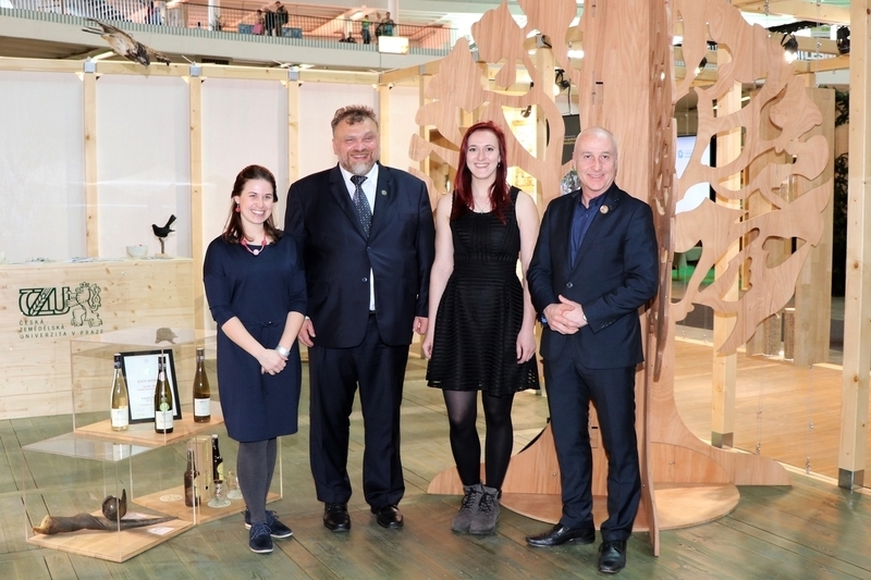 Slavnostní otevření stánku Zleva: Ing. Lenka Trandová, organizátorka soutěže, Nadace dřevo pro život, prof. Ing. Marek Turčáni, PhD., děkan FLD ČZU, Bc. Helena Vostalová, autorka vítězného návrhu, Ing. Stanislav Polák, ředitel Nadace dřevo pro životZdroj: www.DrevoProZivot.cz