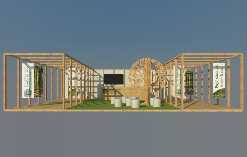 Nový veletržní stánek Fakulty lesnické a dřevařské ČZU v Praze podle návrhu Bc. Heleny Vostalové