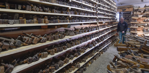 Také jejich sbírka hoblíků je rozmanitá. Drobné nástroje se vejdou do dlaně a používali je koláři, naproti tomu velké hoblíky používané na pivovarské sudy nešlo unést. Neposouvaly se po dřevě, ale naopak dřevo po nakloněném hoblíku jako po klouzačce. Samostatnou kategorií jsou hoblíky na výrobu párátek. Mezi nejcennější exponáty patří karosářský hoblík. "Obdobný se v Německu vydražil za asi 900 eur (přes 23 tisíc korun), existoval pravý, levý a rovný, my máme jen jeden," řekl Kolouch.