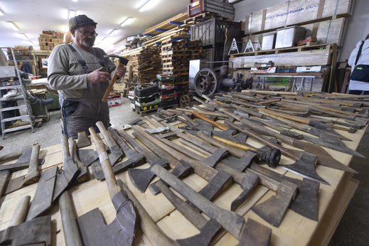 Radek Kolouch se svým bratrem Milošem budují pro svou sbírku hoblíků, seker a dalšího náčiní v obci Frankův Zhořec na Žďársku muzeum věnované historii zpracovávání dřeva.Garant sbírky a tesařský mistr Karel Klouda u stolu s tesařskými sekerami, které patří do kolekce sourozenců Radka a Miloše Kolouchových.