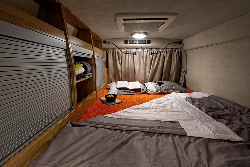 Na rozdíl od velké části konkurentů umí nábytkové vybavení maximálně přizpůsobit tak, aby byl využit vnitřní prostor dodávky co nejúčelněji. Proto třeba koupili speciální lis na ohýbání lehké překližky. Zaoblená víka skříněk, šuplíků, poliček a dalšího vybavení jsou tak nejen hezká, ale rovněž skvěle plní svůj účel.