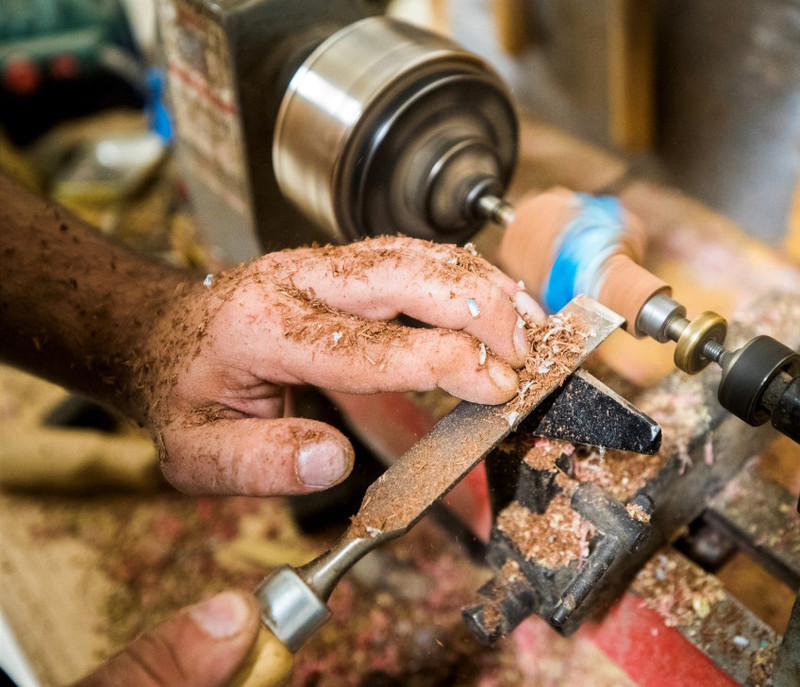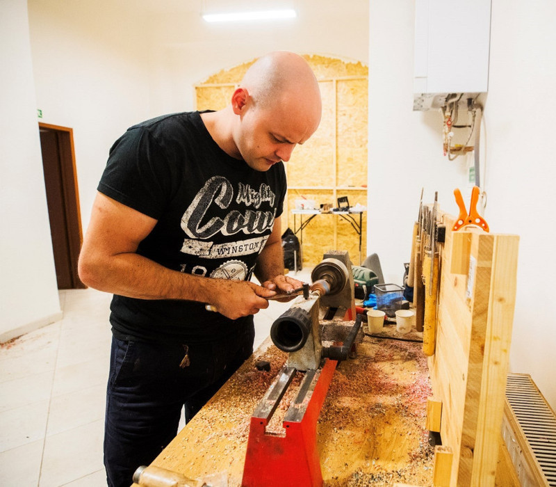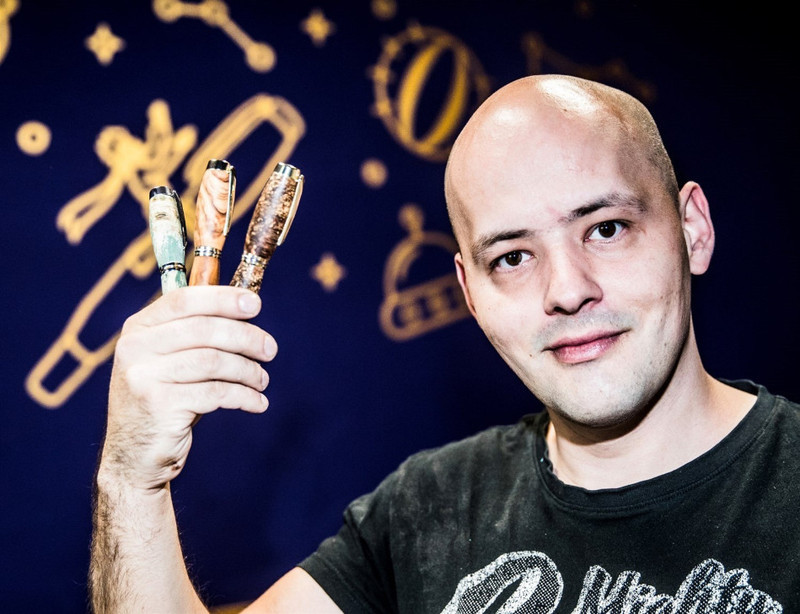 „Pracoval jsem v kempu v rámci programu Work and Travel a tam jsem poznal jednoho Kanaďana, který stál každý den u soustruhu,“ vypráví, jak se poprvé setkal s výrobou dřevěných per.