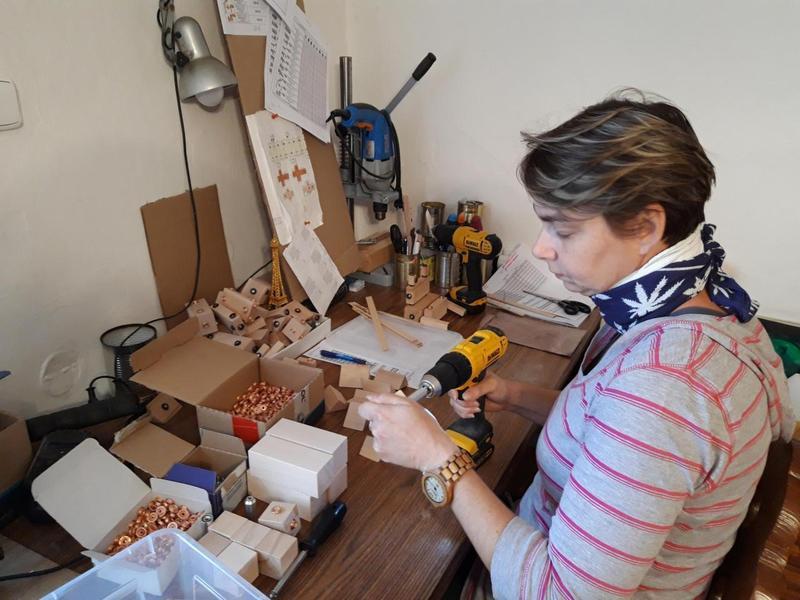 Petra Modrová po 23 letech opustila práci na poště, ale neměnila by. „Strašně mě to baví. Je to ruční práce a je za mnou něco vidět,“ ukazuje, jak jí jde práce s vrtačkou od ruky. Jen v noci před veletrhy prý mívá obavy, zda stihla vyrobit dost dílků a bude mít dostatek stavebnic pro všechny zákazníky.