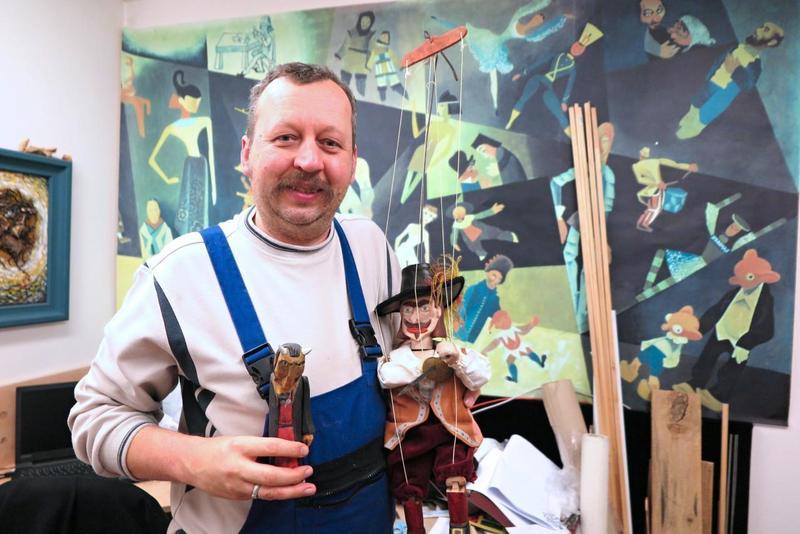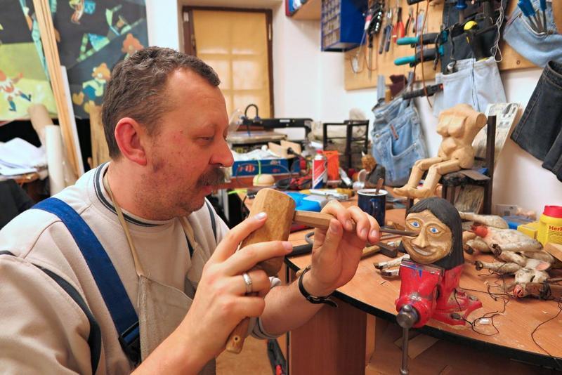 A protože mu rozbité loutky učarovaly, rozhodl se zkusit udělat také nějaké nové. Zadařilo se a dnes už si loutky pravidelně vyrábí sám. Jsou to marionety, tedy loutky vedené shora na provázcích.
