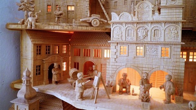 „Nedávno jsem byl za starostou v Česticích, protože jedna paní si objednala betlém ve tvaru zámku. Na radnici jsem si půjčil plány zámku, abych se měl čeho chytit. Je to pro mě lepší, než si ho nafotit a doměřit si to,“ líčí řezbář.
