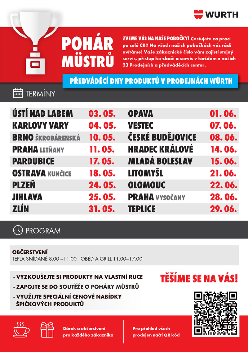 Další termíny předváděcích dnů produktů v prodejnách WÜRTH: