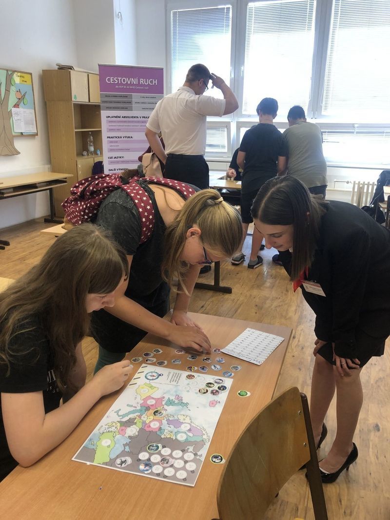 Projekt o 56 stanovištích byl ze strany realizačního týmu zorganizován pro žáky 5. – 8. tříd, program na více než dvaceti stanovištích zajistili žáci naší školy ve spolupráci se svými učiteli. Poznáš nářadí sloužící k opravě automobilů? Naučíš se zaplést cop? Ukaž, kolik talířů zvládneš nést na jedné ruce! Vyrob si dekoraci na zabalení dárkového balíčku! Vyzkoušej si řezání na lupénkové pilce! Přiřaď název turistické destinace světa k obrázku! Vytvoř 3D modelaci kostky! Poznáš vůni potraviny? Zvládneš malovat na obličej? Přiřadíš správně názvy kostí? Jistě jste poznali, o které povolání se jednalo. A to jen zlomek aktivit, díky nimž se žáci seznámili se všemi obory, jež naše škola nabízí. Automechanik, Kadeřník, Kuchař-číšník, Prodavač, Truhlář – studium tříleté s výučním listem, Cestovní ruch, Grafický design a podnikání, Hotelový management, Kosmetička, Sociální činnost – studium čtyřleté s maturitní zkouškou.