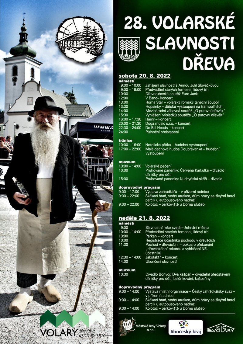 Chcete na vlastní oči vidět stará řemesla, ochutnat volarské koláčky, vzít děti na pohádku, nebo se zapojit do pokoření rekordu? A víte, že to najdete na jednom místě? Volarské slavnosti dřeva pobaví celou rodinu, tak si udělejte výlet za dobrodružstvím! Volarské slavnosti dřeva začínají 25. srpna v 9 hodin na náměstí ve Volarech.