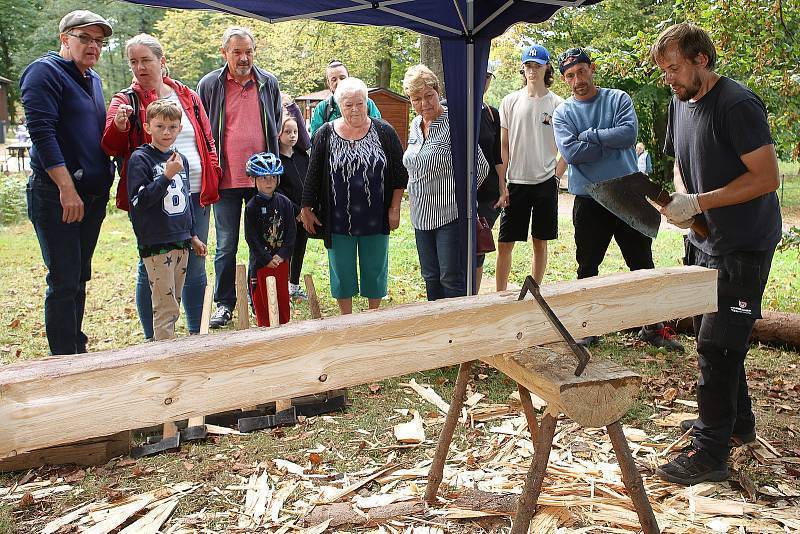 Fortel a zručnost. Tesař předvedl v Dobřívě ruční opracování kmene