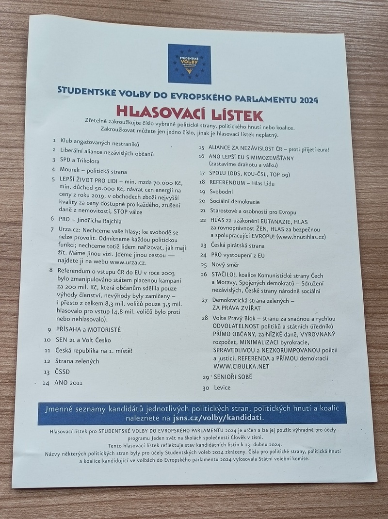 A jak tedy Studentské volby na Přímce dopadly? Celkový počet odevzdaných hlasů byl 227. Zvítězila strana s číslem 9- PŘÍSAHA a MOTORISTÉ, na druhém místě skončila strana číslo 16- ANO LEPŠÍ EU S MIMOZEMŠŤANY a třetí příčku získala strana s číslem 5- LEPŠÍ ŽIVOT PRO LIDI.