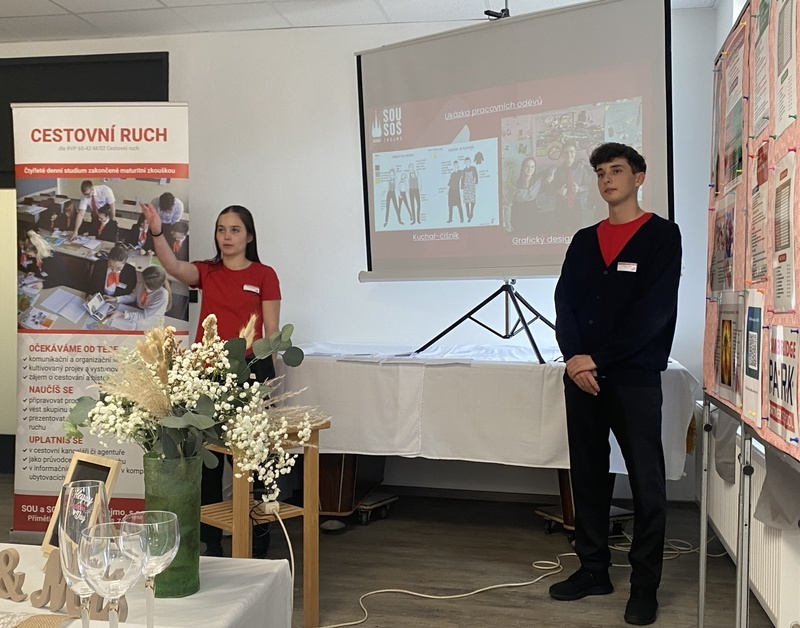Žáci oboru Cestovní ruch, Tomáš Perdoch a Kristýna Nevěčná, žáky přivítali a společně s ostatními spolužáky reprezentujícími ostatní obory představili možnosti studia. Následovaly praktické ukázky – od práce automechaniků a truhlářů přes líčení a baristickou show až po ochutnávky z kuchyně budoucích číšníků a kuchařů. Velký zájem byl i o obory Hotelový management, Grafický design a podnikání, Prodavač, Kosmetické služby a Sociální činnost.