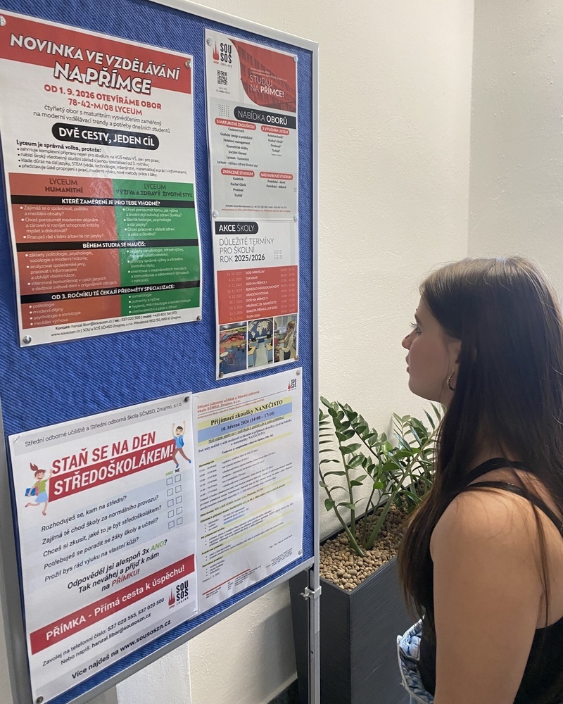 Škola zároveň představila nový maturitní obor 78-42-M/08 Lyceum, který nabídne všeobecné vzdělání se zaměřením volitelným od 3. ročníku – buď humanitní oblast, nebo výživu a zdravý životní styl. Studium propojí moderní technologie, cizí jazyky, STEM předměty a práci s informacemi a připraví žáky nejen na studium na VOŠ a VŠ, ale i na praktické uplatnění.