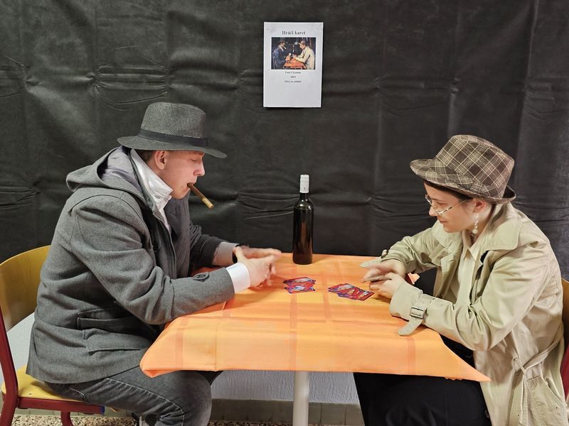 Obor Cestovní ruch se kromě doprovázení organizovaných skupin a zajištění vstupních informací blýskl také originálním uměleckým programem. Na chodbách školy připravili žáci sérii živých obrazů inspirovaných slavnými díly světového malířství.