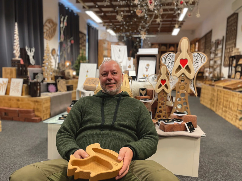„Koupili jsme ho docela nadivoko. Neměli jsme zajištěný servis, takže jsme se to museli sami naučit. Sehnat náhradní díly byl problém,“ líčí. Stroj chtěli používat na reklamní předměty, ale jejich výroba byla pro zákazníky drahá a nebyl o ně valný zájem. A tak se pustili do výroby dřevěných ozdobiček. „Byli jsme první, kdo je v Evropě začal laserem průmyslově vyrábět,“ říká.