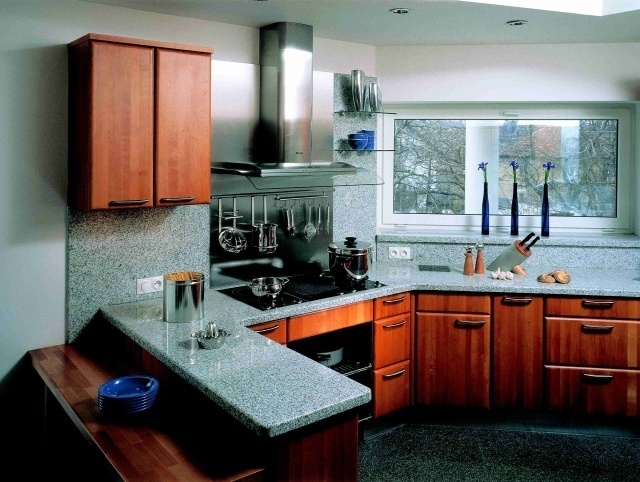 Zájem o žulu v kuchyni narůstá a tento přírodní kámen (pozor – neplést si s mramorem!) získává stále více obdivovatelů v konkurenci jiných používaných materiálů, jako je dřevotříska, dřevo, Corian, postforming, Technistone apod. Proč? Co vlastně zákazníkovi, který řeší otázku jaký povrch pro svoji kuchyni zvolit, žula nabízí? Jaké jsou její přednosti? Především velká tvrdost. Na žulové desce můžeme bez problémů krájet zeleninu nebo krájet a naklepávat maso – desku nepoškodíme nejen nožem, ale žádným z běžně používaných kuchyňských nástrojů. Na naklepávání masa se doporučuje celodřevěná palička nebo palička s umělohmotným nástavcem, ale to platí o materiálech jiných desek. Žulové desky bez potíží snesou teploty 250 °C, nevadí jim hrnec s vařící vodou, ani pánev s rozpáleným olejem, takže odolnost proti vysoké teplotě je zaručená.