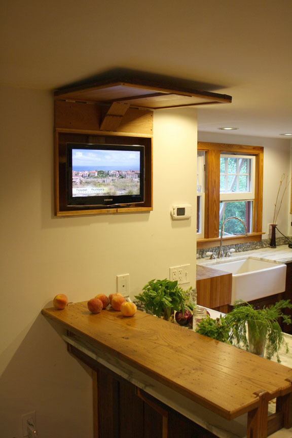 Máme pro Vás zajímavý nápad od truhláře z USA, jak šikovně ukrýt plochou televizi.