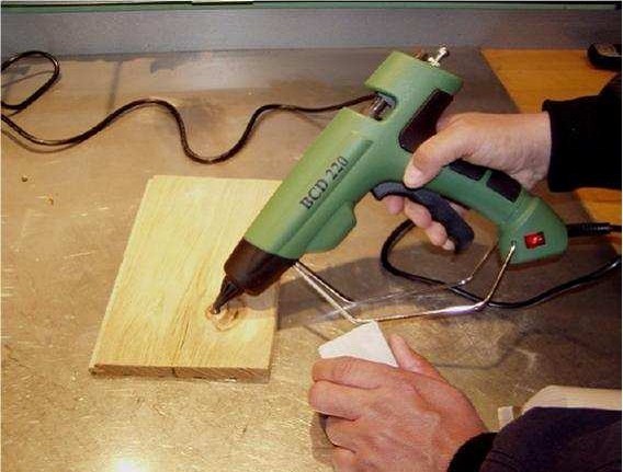 Pomocí tavného tmelu Thermelt je možné velmi jednoduše a efektivně opravovat suky, smolníky a jiné vady ve dřevě bez nutnosti odvrtání suků a vad.