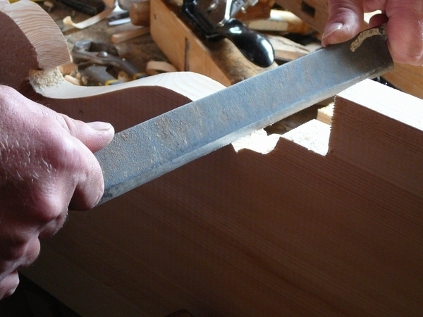 2. Pomocí hoblíku vlaštovky se seříznutím opracují snadno dostupná místa hrany.
