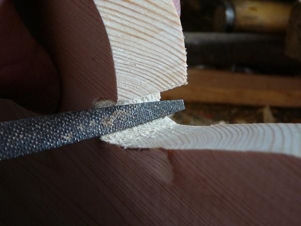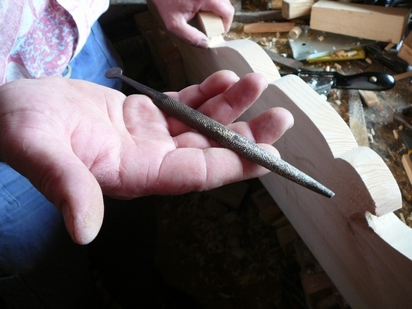 3. Na vnitřní záhyby řezby, kam se hoblík nevejde, se použije poříz a rašple.