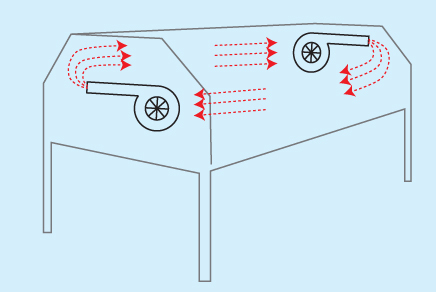 Systém topení v pracovním prostoru lisu je řešen pomocí ventilátorů s ohřevem