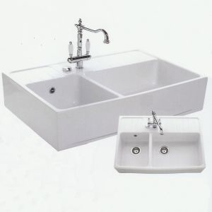 Keramické dřezy jsou z materiálu, který je vypalován v pecích při vysokých teplotách (cca1200 °C). Jedná se o neutrální hygienický materiál, odolný proti nárazům, snadno se udržuje. Keramické dřezy mají velmi hladký povrch, převažuje u nich výrazný podíl ruční výroby. V nabídce jsou keramické dřezy v rustikálním i moderním provedení. Keramický materiál je oceňován zákazníky pro vysokou kvalitu povrchu, výjimečnost provedení, nevšední tvary a snadnou údržbu.