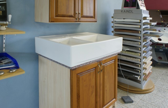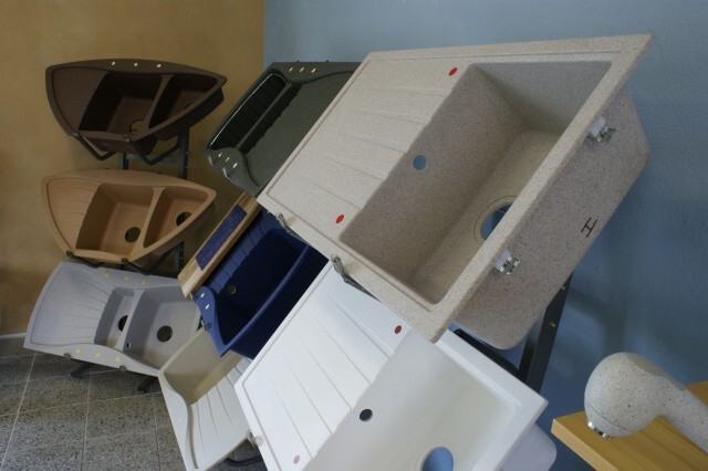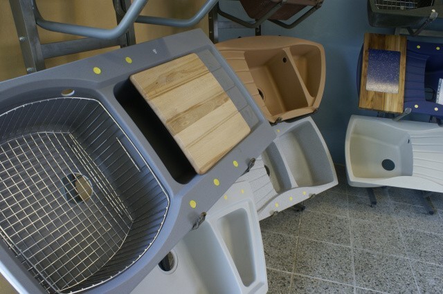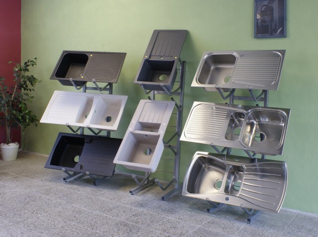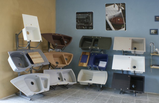 Ukázka z bohaté škály více než 1000 dřezů, které je možné vidět v prodejně