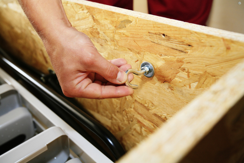 Obrázek 12c: Dovření a tím skrytí schodiště do stropu zajistí stahovací tyč opatřená plastovou koncovkou