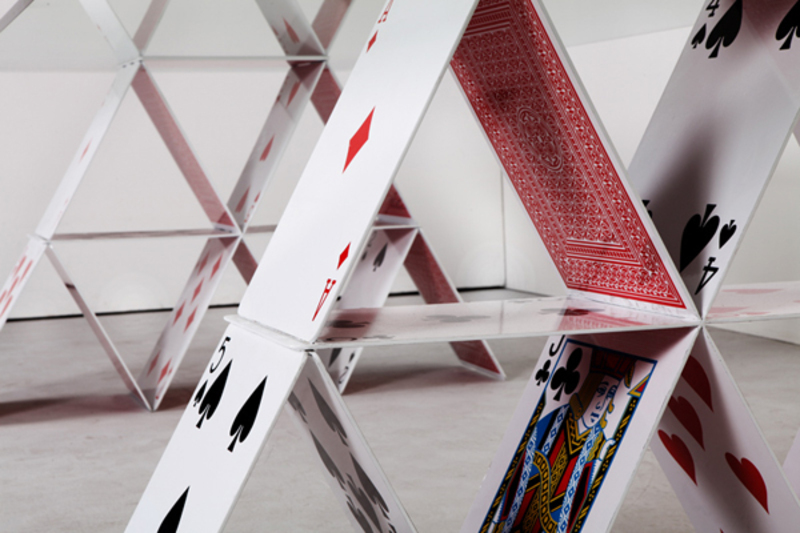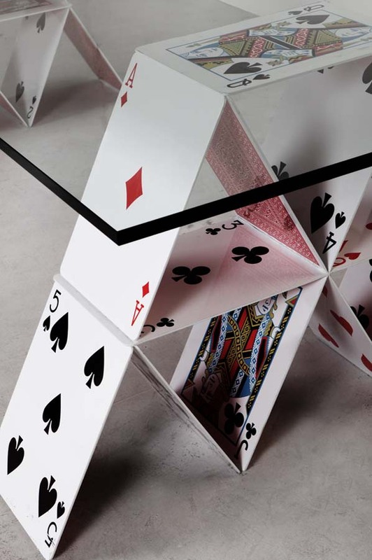 Tento stůl není samozřejmě podpírán kartami, jak by se mohlo zdát. Každá „karta“ je vlastně ocelový plát, který je polepen vyobrazením karty. Kreativním přístupem získáte neotřelý stůl pro vaše společné karetní večery s přáteli. Pokud vlastníte nebo budujete karetní hernu, máte šanci vybudovat nejstylovější hernu široko daleko. Každý stůl může být originál!