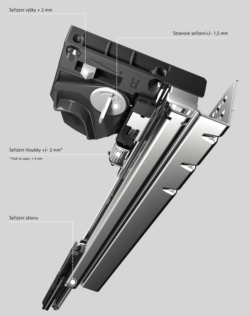 Výsuv Quadro 4D umožňuje seřízení chodu a čela zásu ...