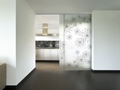 Celosklěněné dveře, pískovaný motiv, otočné skryté ...