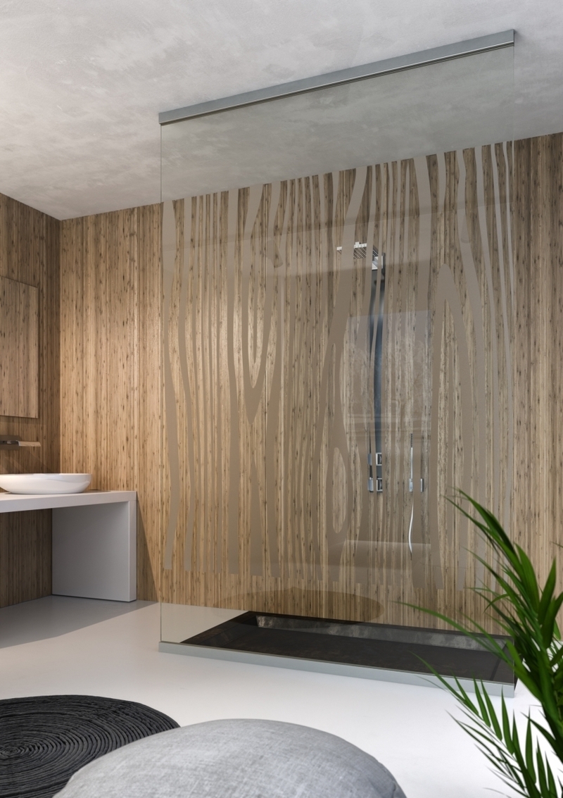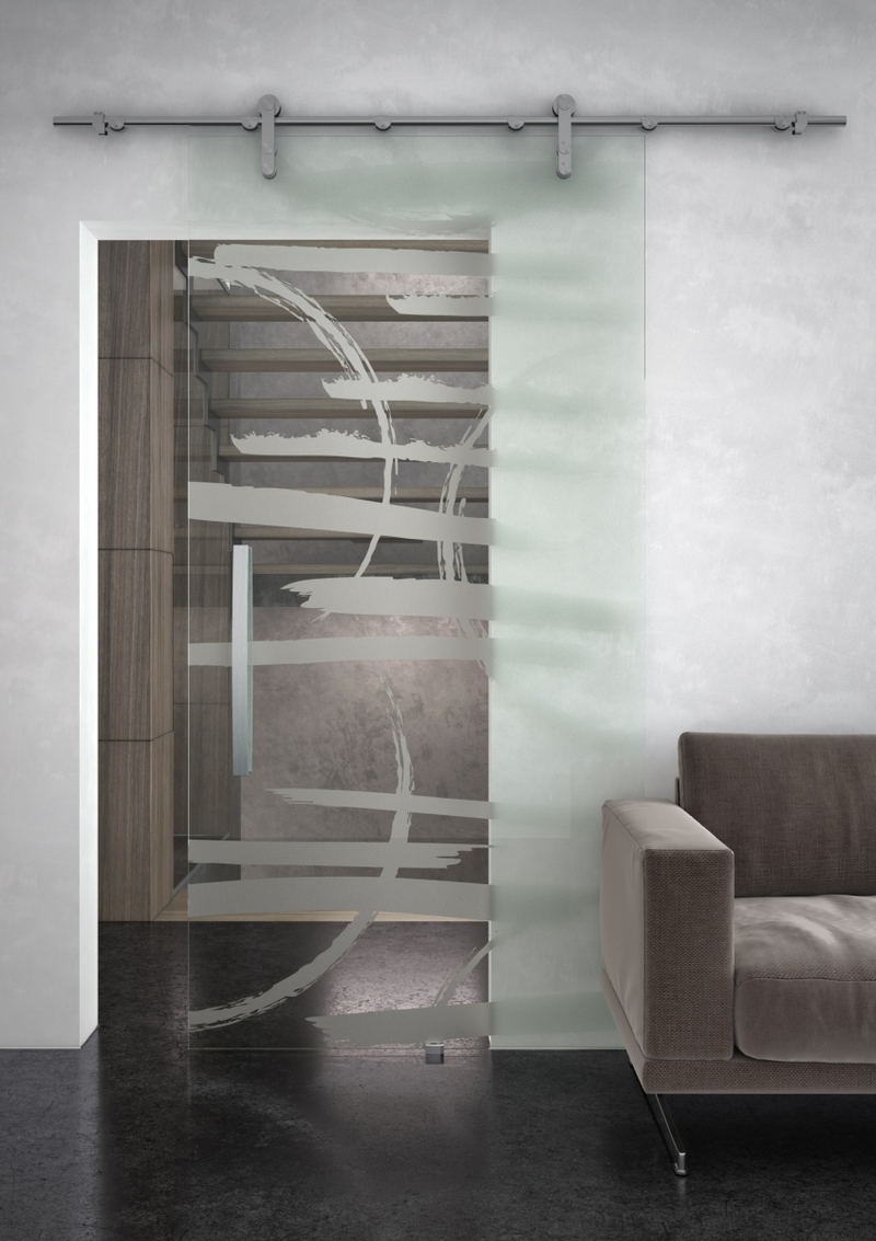 Celoskeněné dveře posuvné po zdi, pískovaný motiv, ...