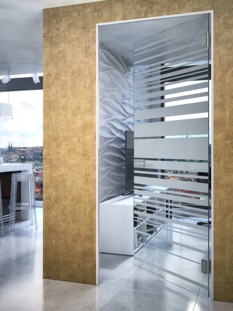 Pískované sklo J.A.P. na celoskleněných otočných dv ...