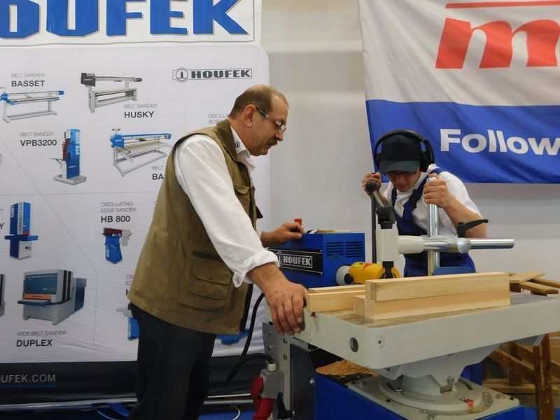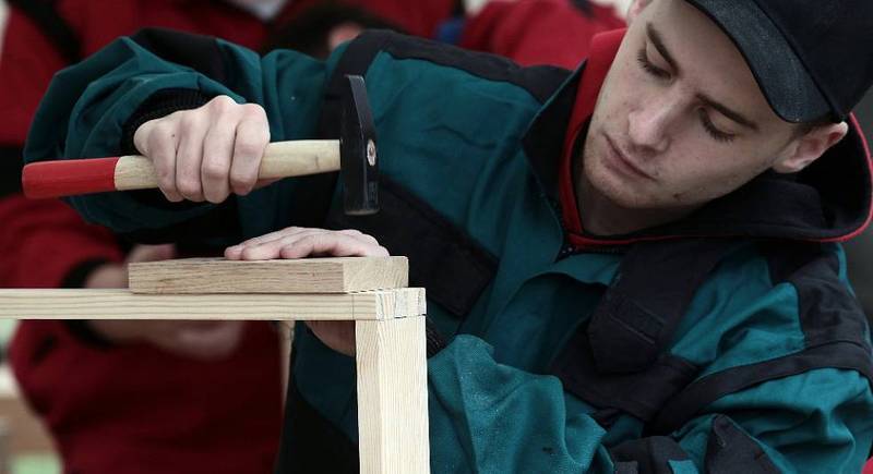 Soutěžící truhlář při práci na svém úkolu