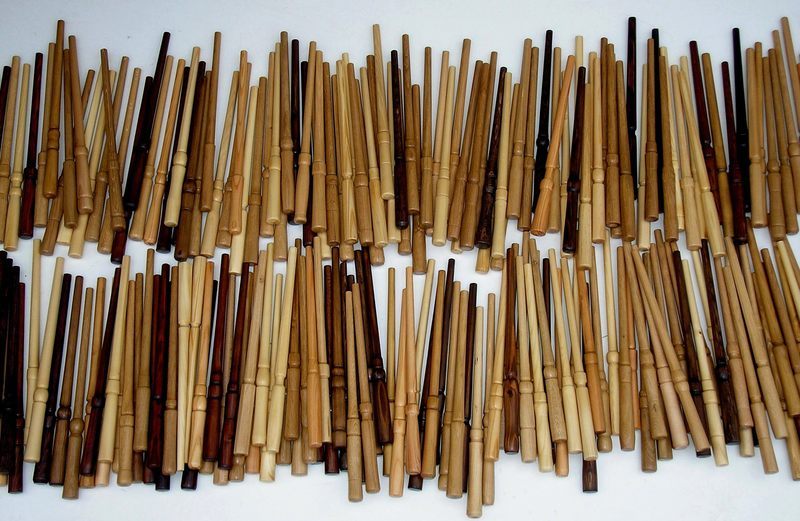Rukojeti i špičky hůlek jsou zaslepeny, zapraveny, ...